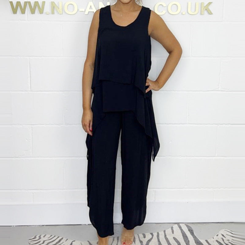 Casual Mouwloze Losse Top en Broekpak voor Plus Size Vrouwen