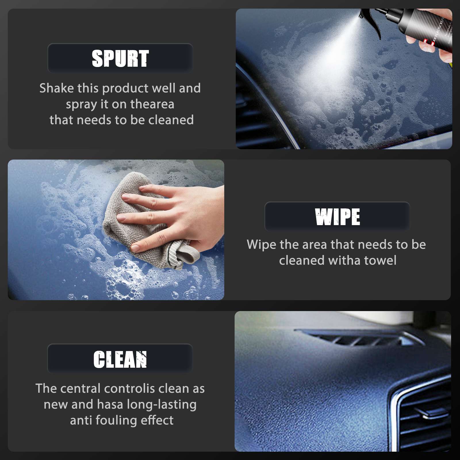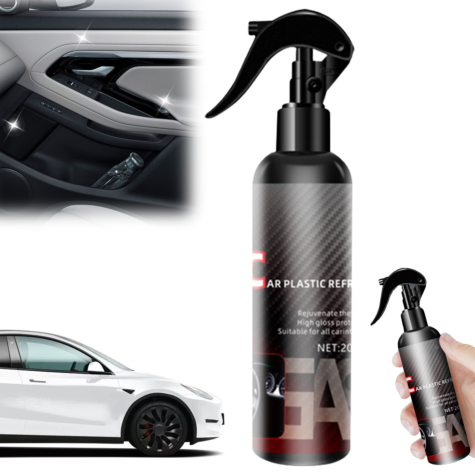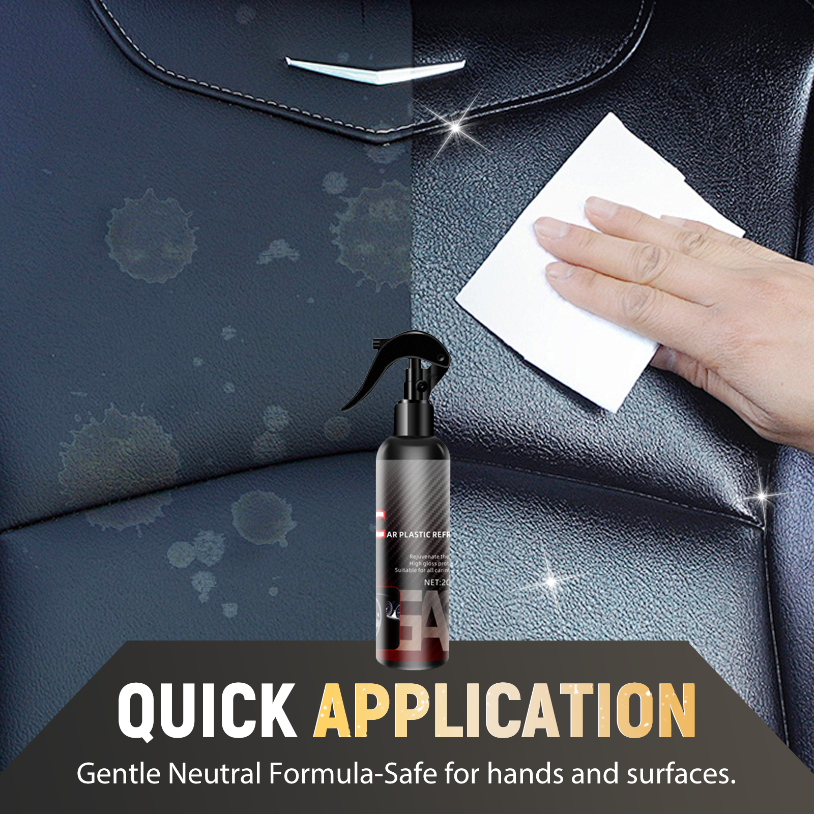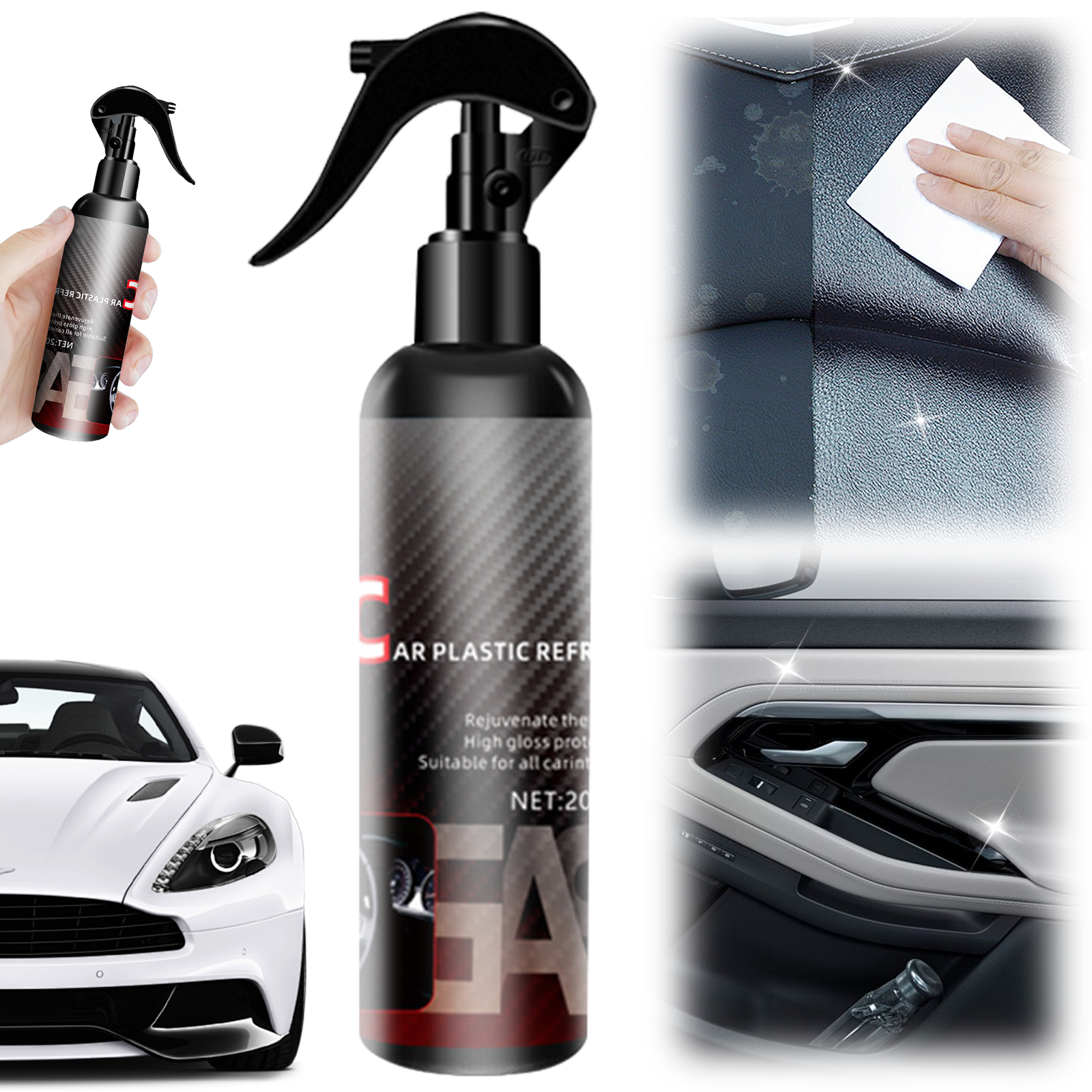 SNEL EN EENVOUDIG AAN TE BRENGEN VOOR HANDIG GEBRUIK: Het ontwerp van de sprayflacon zorgt voor een eenvoudige en nauwkeurige toepassing. Spuit het reinigingsmiddel gewoon op het plastic oppervlak, veeg het af met een schone doek en je bent klaar. De formule werkt snel, waardoor je tijd en moeite bespaart. Het compacte formaat is ook handig om mee te nemen in je auto, zodat je de plastic onderdelen van je auto altijd en overal kunt opfrissen.