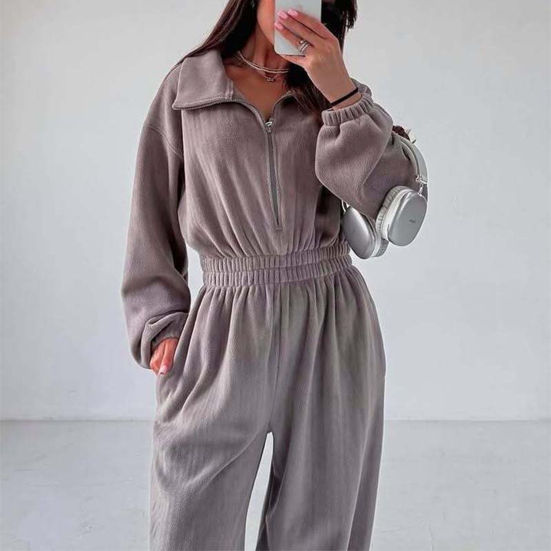 Gezellige, warme jumpsuit met rits aan de voorkant