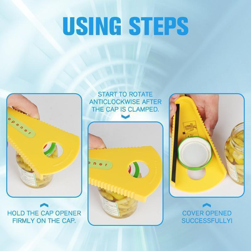 De flesopener is ontworpen voor mensen die moeite hebben met het openen van flessen en potten met schroefdoppen. Hij opent zelfs de kleinste flesjes, zoals miniatuur likeurflesjes, maar ook de grootste luchtdichte potten en andere voedselcontainers. Dit maakt hem gemakkelijk te openen.