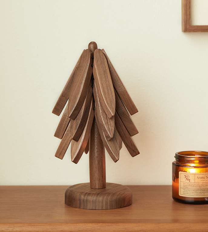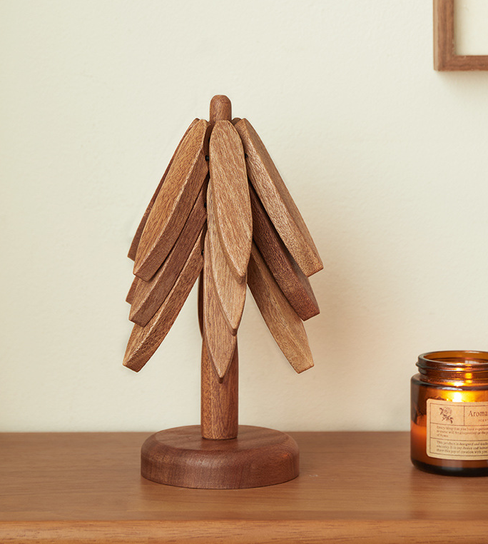 Als een kerstboom🌳. Bescherm uw tafel in stijl. Onze onderzetters van natuurlijk hout zijn hittebestendig, duurzaam en een mooie manier om uw oppervlakken te beschermen tegen hete potten en pannen. ♨️