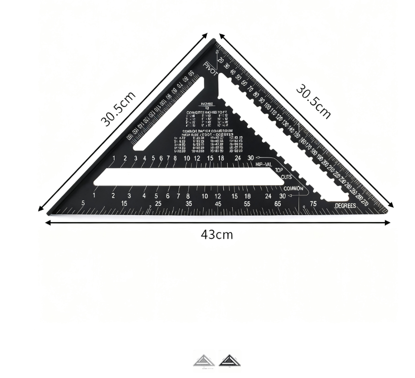 MULTIFUNCTIONEEL: Houtbewerkings driehoek liniaal 7-12 inch heeft vele toepassingen, geschikt voor het markeren van vierkanten en 45/90 graden lijnen, gradenbogen, kadervierkanten, driehoeksvierkanten, het markeren van horizontale basislijnen, en een geweldige metgezel voor timmerlieden en bouwers.