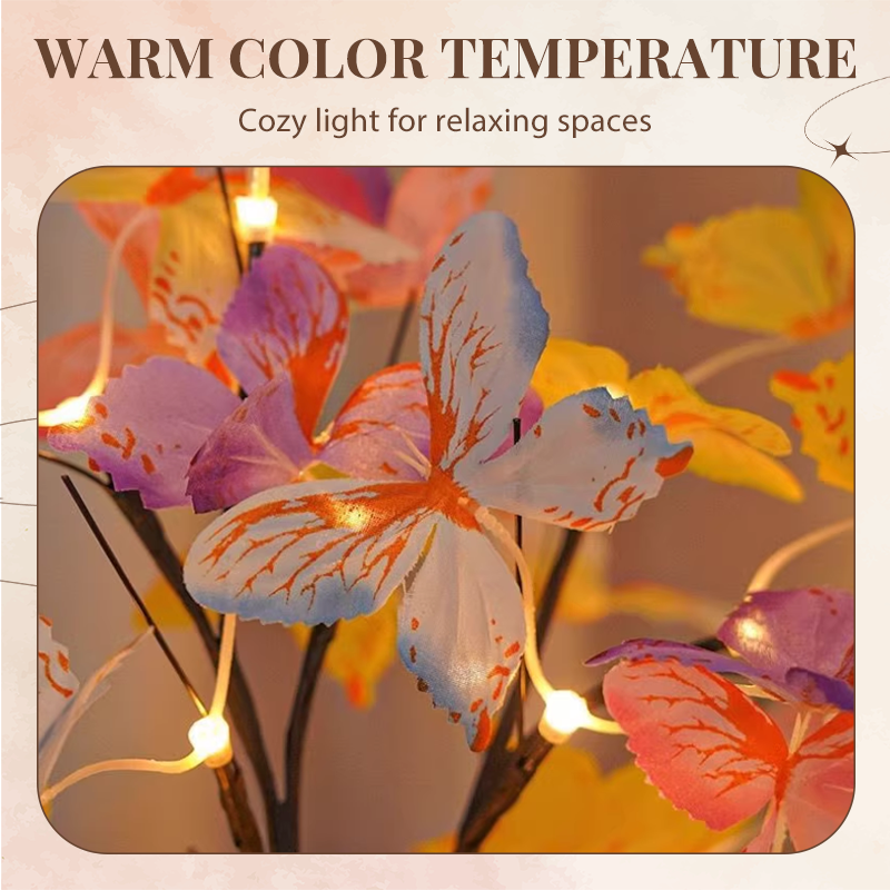 FEESTELIJKE SFEER VOOR ELKE GELEGENHEID : Transformeert gewone ruimtes in magische omgevingen met een vleugje speelsheid. Of het nu gebruikt wordt voor Kerstmis, Valentijnsdag of een alledaagse woonstijl, het kleurrijke vlinder- en boommotief brengt vreugde en charme, waardoor het ideaal is als cadeau of als seizoensdecoratie.