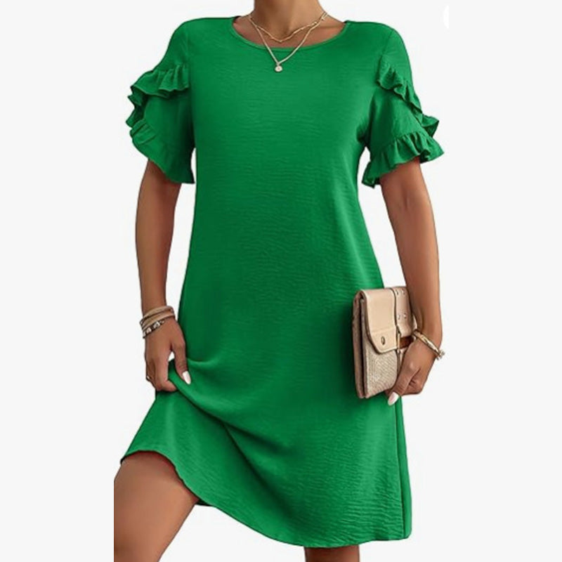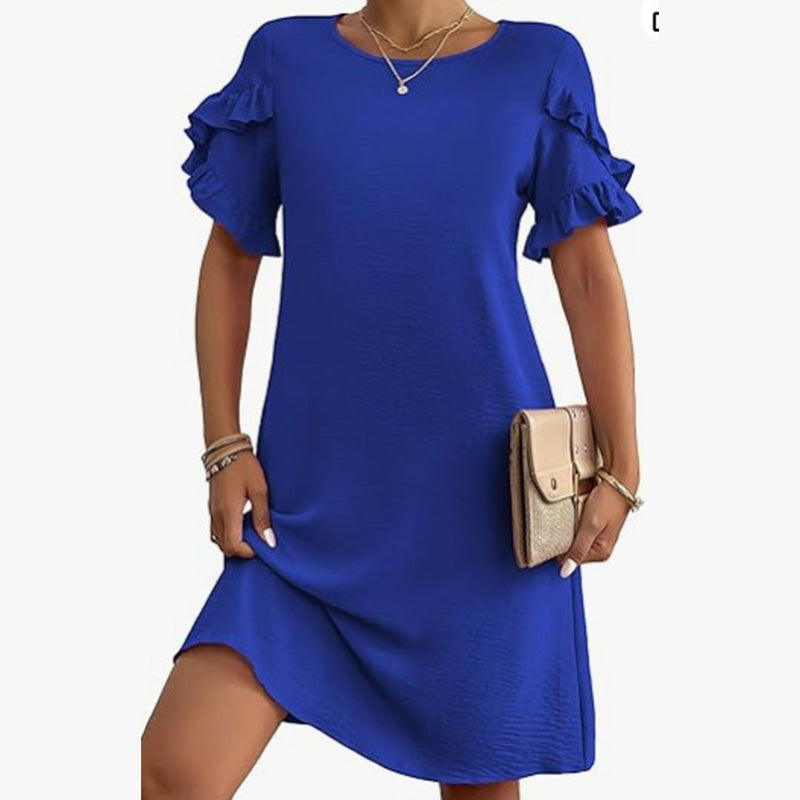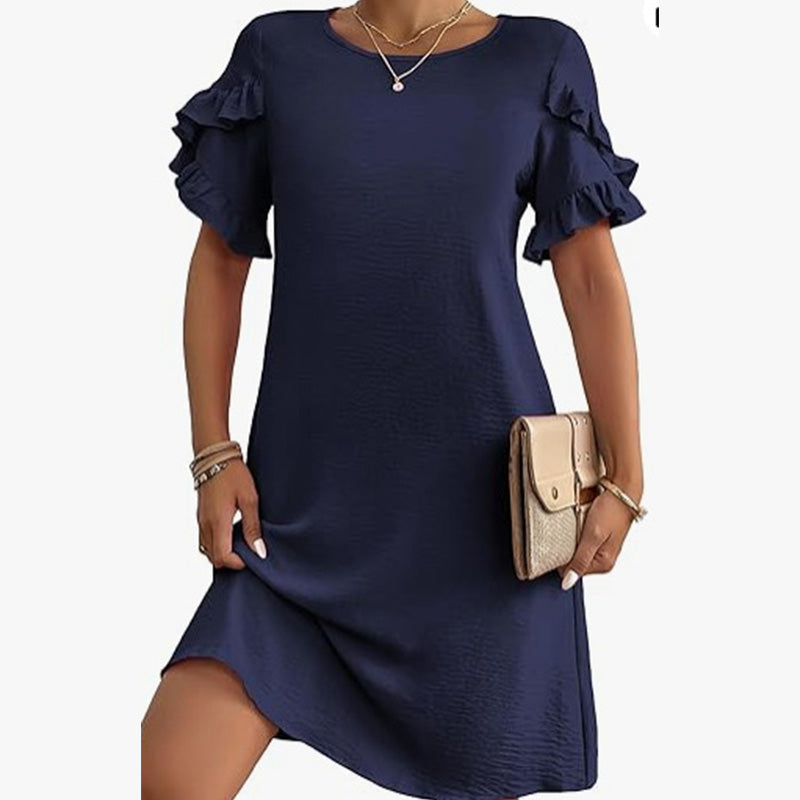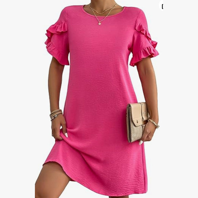 Pakket bestaat uit: 1 * Dames A-lijn jurk met ruches en korte mouwen
