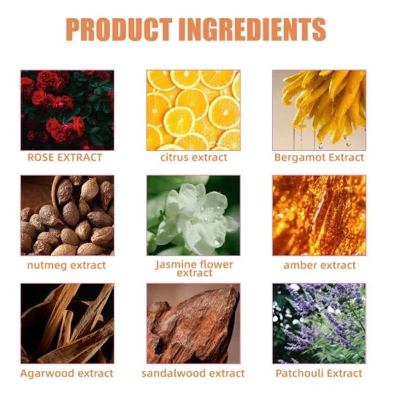 Heart Notes - Nutmeg, Jasmine, and Amber, creating a rich and alluring bouquet.