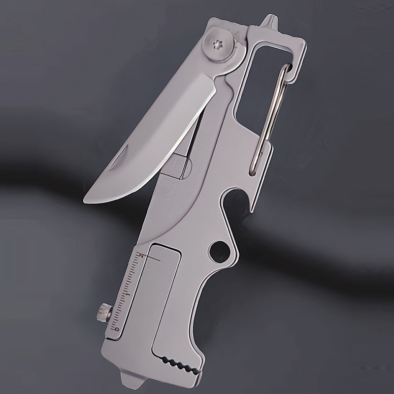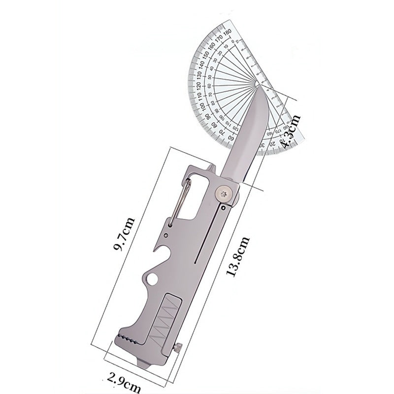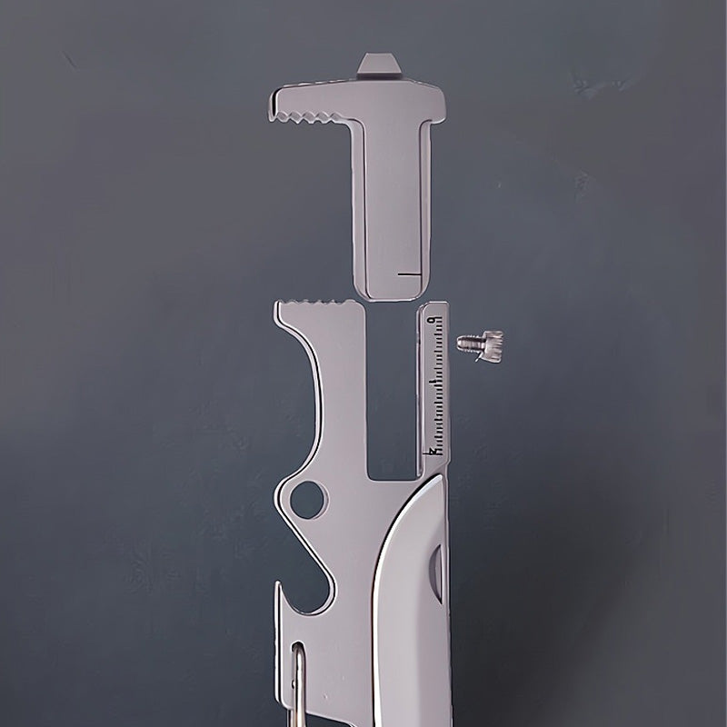 VEELZIJDIGE MULTITOOL: Deze multifunctionele tool combineert een mes, moersleutel, liniaal, schroevendraaiers en een flesopener. Ontworpen om verschillende taken aan te pakken, is het ideaal voor doe-het-zelfprojecten, kamperen en dagelijks gebruik, en biedt gemak en efficiëntie in één compact apparaat.
