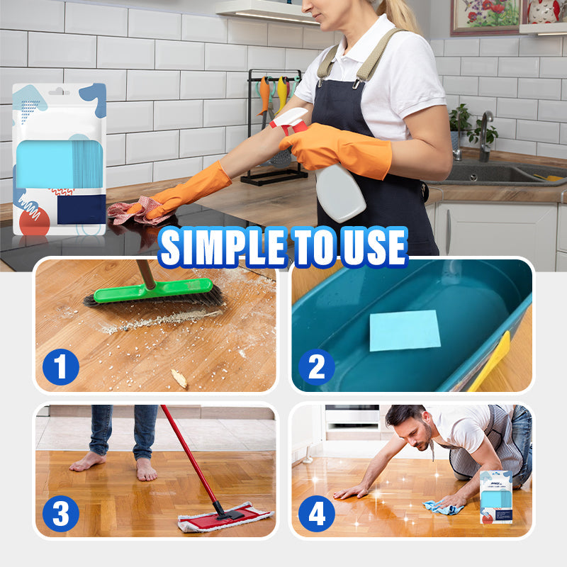 EENVOUDIG IN GEBRUIK MET LANGDURIGE RESULTATEN – De multifunctionele reinigingsdoekjes zijn zeer eenvoudig te gebruiken. Los een doekje op in water, doop uw mop in de oplossing en dweil de vloer. Ondanks het eenvoudige gebruik blijft het effect tegen vlekken langdurig. Na gebruik hoeft u minder vaak te dweilen – de vloer blijft langer schoon en glanzend.