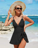 Deze stijlvolle badpak met buikcontrole plooien, verstelbare ondersteuning en anti-slip ontwerp is perfect voor actief waterplezier of ontspanning in een resort.