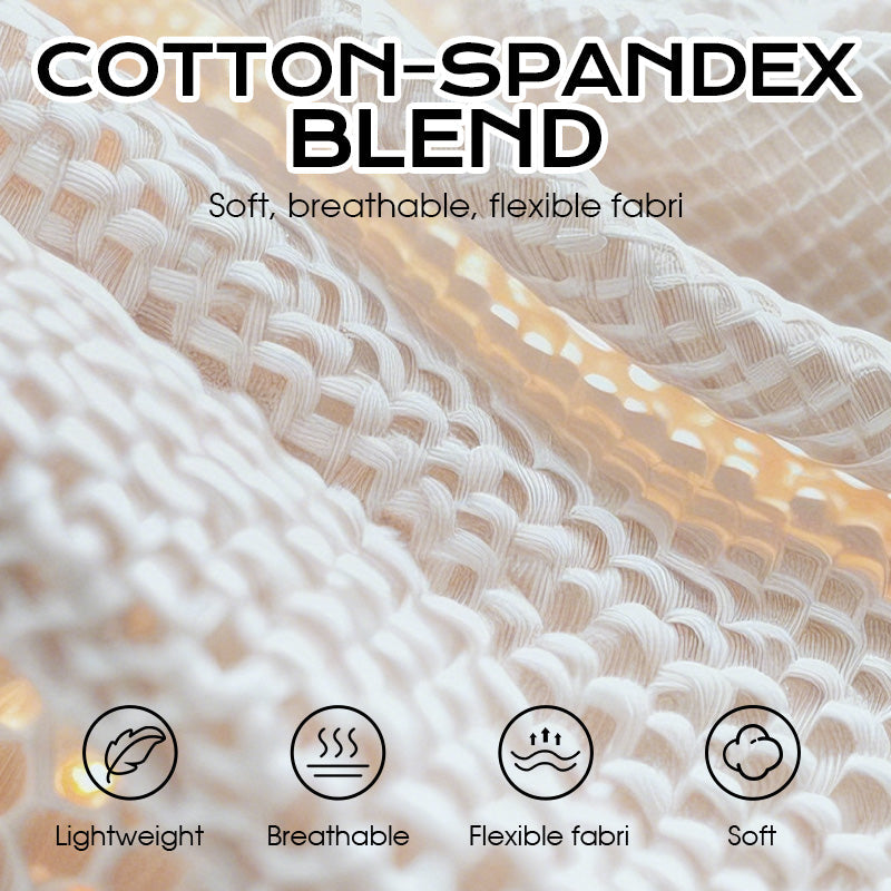 ZACHTE KATOEN-SPANDEX STOF : Gemaakt van een hoogwaardige katoen-spandex mix, voelt de stof zacht aan op de huid en is hij uitstekend ademend. De inherente stretch beweegt met je lichaam mee en maakt buigen, hurken en strekken zonder beperkingen mogelijk.