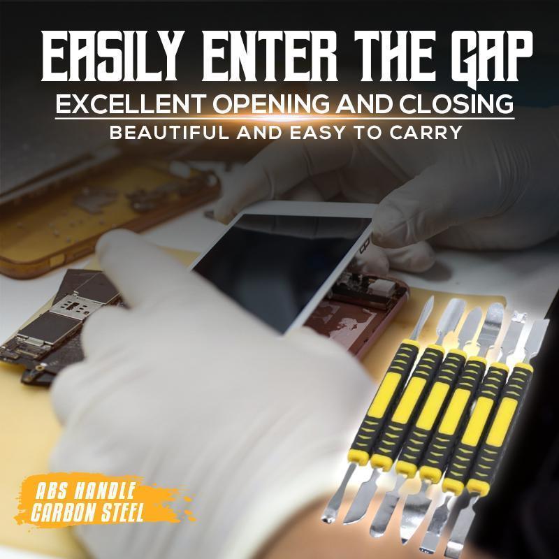 Dubbelzijdig ontwerp met scherpe punten voor gemakkelijke invoeging in kleine kieren en strakke ruimtes. De ondiepe diepte zal geen schade aan de binnenste onderdelen veroorzaken. Zes-delige set met 12 bladen voor elke reparatiesituatie! Voor al je dagelijkse behoeften.