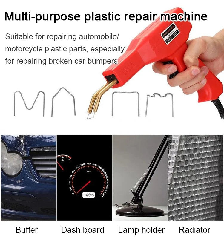 - Deze lasmachine is eenvoudig te gebruiken voor het repareren van kunststof bumpers, motorfietsen, grasmaaiers en andere thermoplastische kunststoffen, en te vergelijken met lassen, lijmen, epoxy's, etc. De Professionele Lasmachine blaast ze allemaal uit het water!