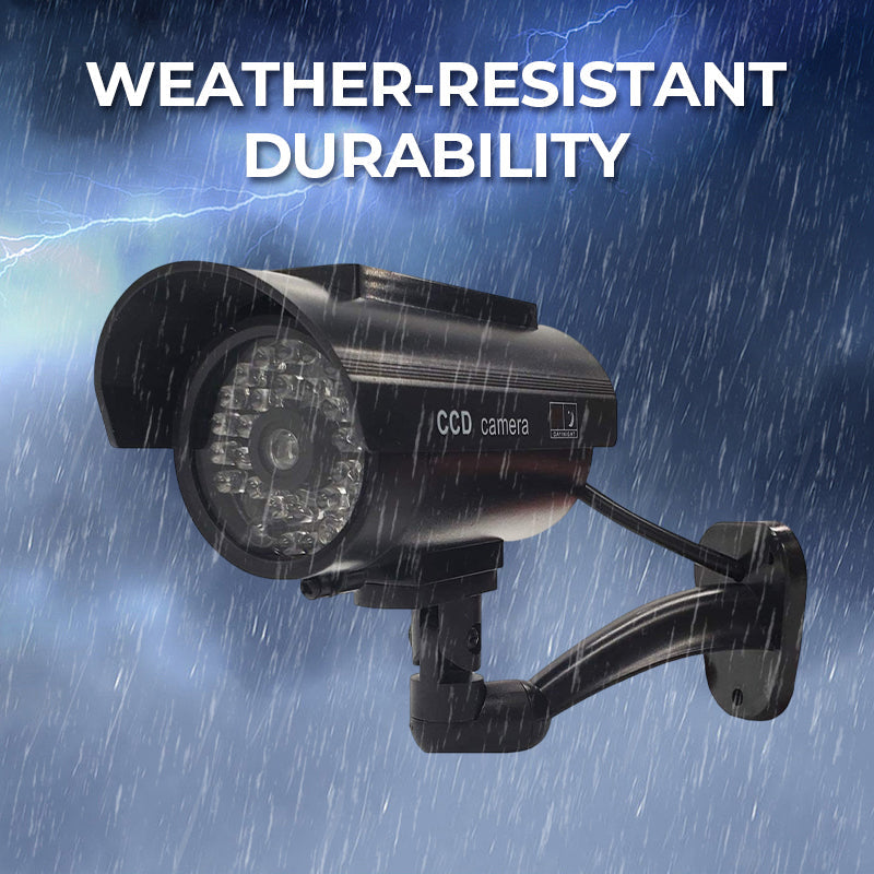 WEERBESTENDIG EN DUURZAAM – Deze dummy camera is gemaakt van uv-bestendig ABS-kunststof en heeft een waterbestendigheid van IP65. Hij is bestand tegen regen, sneeuw en extreme temperaturen. De corrosiebestendige materialen garanderen langdurig gebruik buitenshuis zonder te vervagen of te beschadigen.