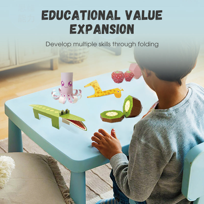 BOEIENDE 3D-ORIGAMI-ERVARING: Het 3D Handgemaakte Origami Boek biedt een boeiende hands-on activiteit. Met drie sets, die in totaal 49 unieke patronen bevatten, brengt het dieren, fruit en klassieke vormen tot leven in 3D. Dit biedt niet alleen urenlang vermaak, maar bevordert ook de creativiteit, fijne motoriek en ruimtelijk inzicht van kinderen terwijl ze plat papier omzetten in gedetailleerde 3D-modellen.
