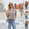 🔥2025 Hot stijl! T-shirt met korte mouwen en bloemenprint met V-hals