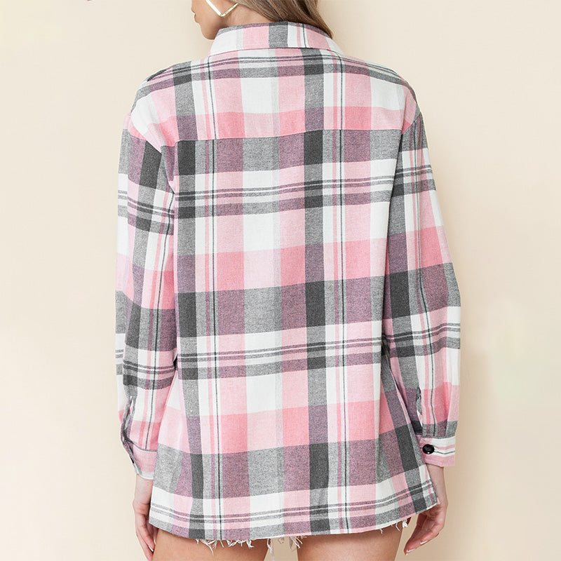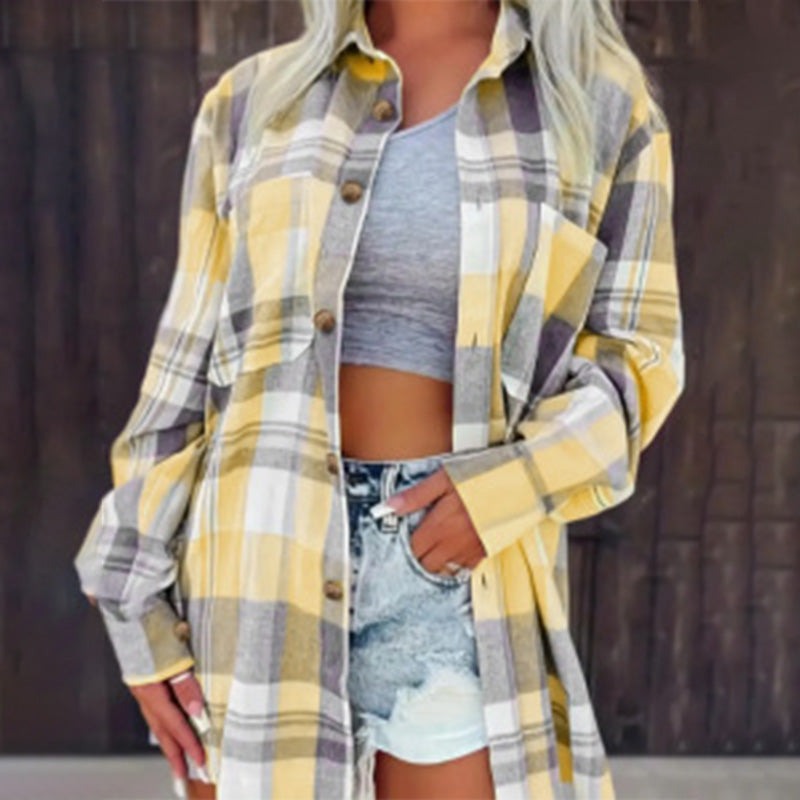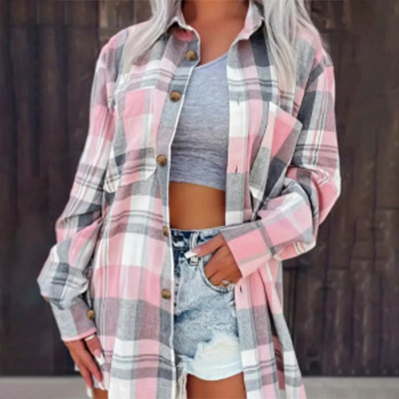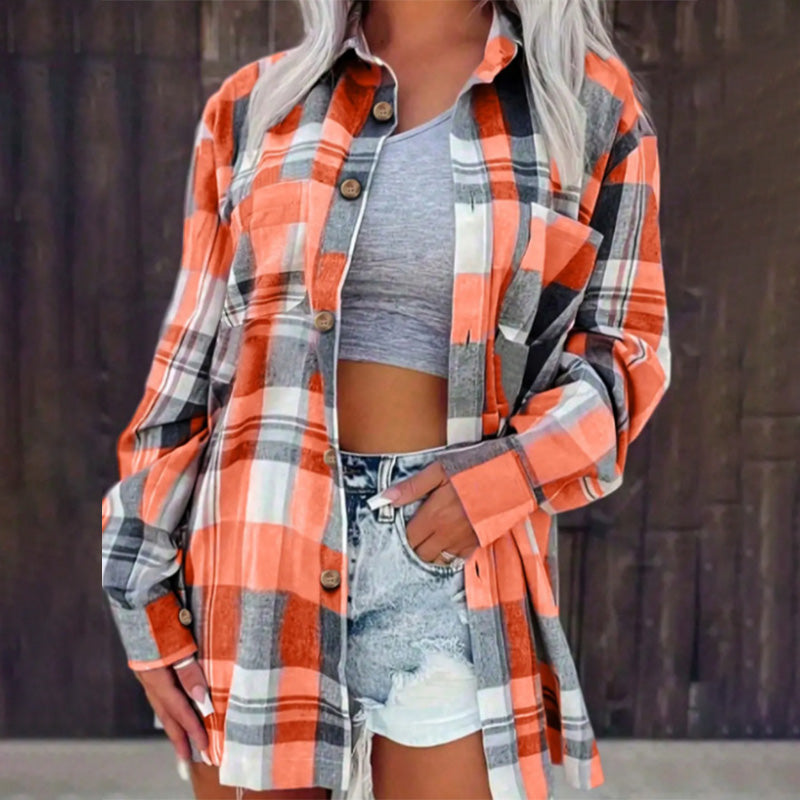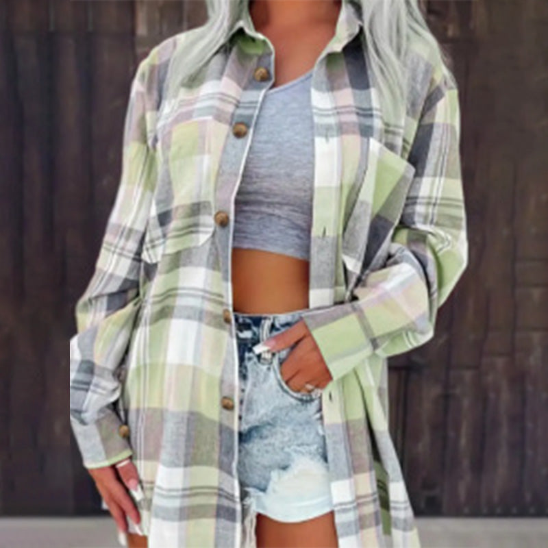 Losvallend geruit damesoverhemd met lange mouwen