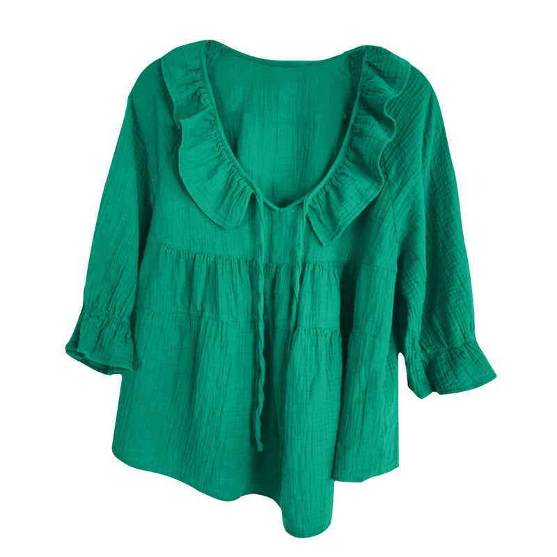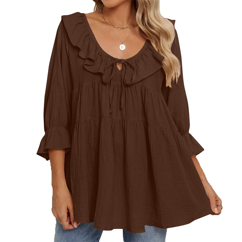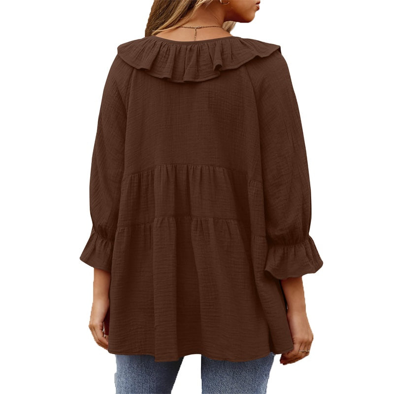 Dames 3/4 mouw gestrikte voorkant ruche gelaagde shirts