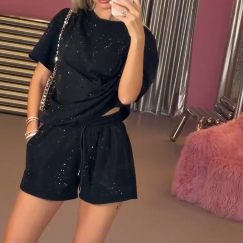 2-delige set van casual top met korte mouwen en shorts voor dames