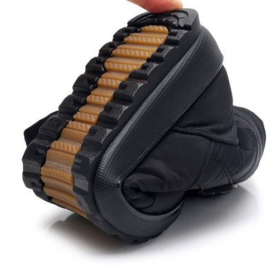 [Antislipzool]: Sneeuwlaarzen met slijtvaste polyurethaan zool voor goede grip op sneeuw en ijs, hak ongeveer 2,5-3 cm.